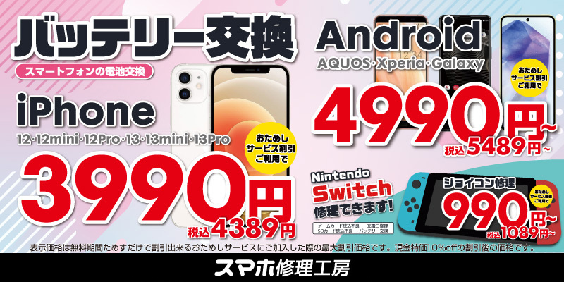 | 電池交換 バッテリー交換/PSEマーク取得 |